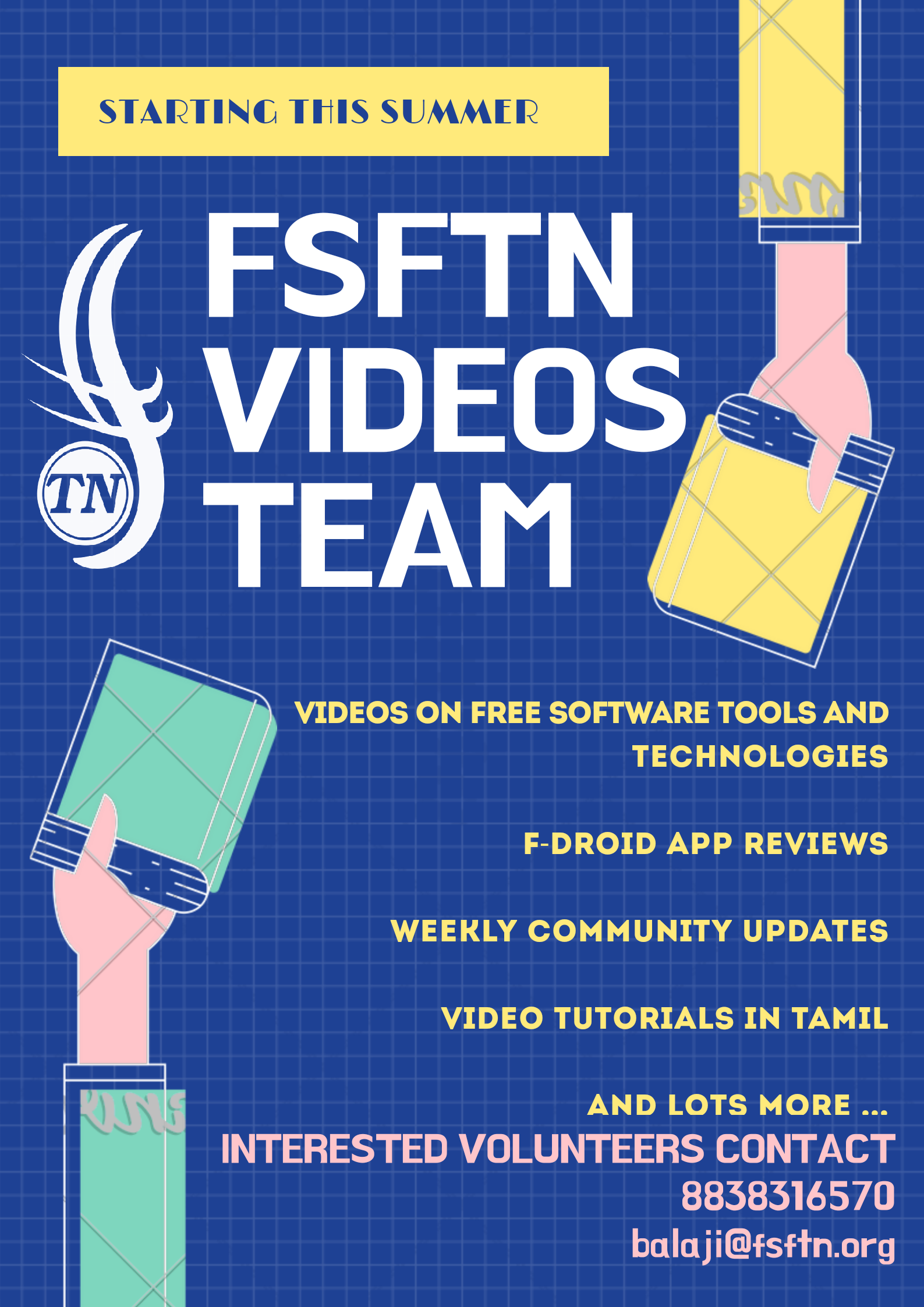 The Videos will be uploaded to FSFTN Accounts in Peertube, Youtube and Facebook under Creative Commons License